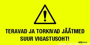 Teravad ja torkivad jäätmed! Suur vigastusoht! 105x50mm 100tk pakis, kollane (paberkleebis)