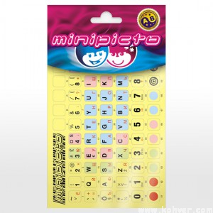 Täielik eesti+vene tähestik. Kleebised erivärvilise tausta ja must-punaste sümbolitega. Lisaks tühjad kleebised, millele võib vajadusel kirjutada tarvilikke tähiseid. Sobib lauaarvutitele!