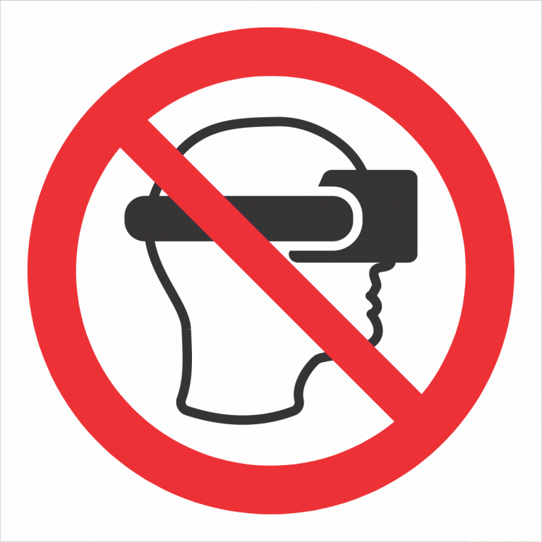 Virtuaalreaalsus (VR) prillide kandmise keeld. Virtuaalreaalsusprillid keelatud. Liitreaalsus prillide keeld.