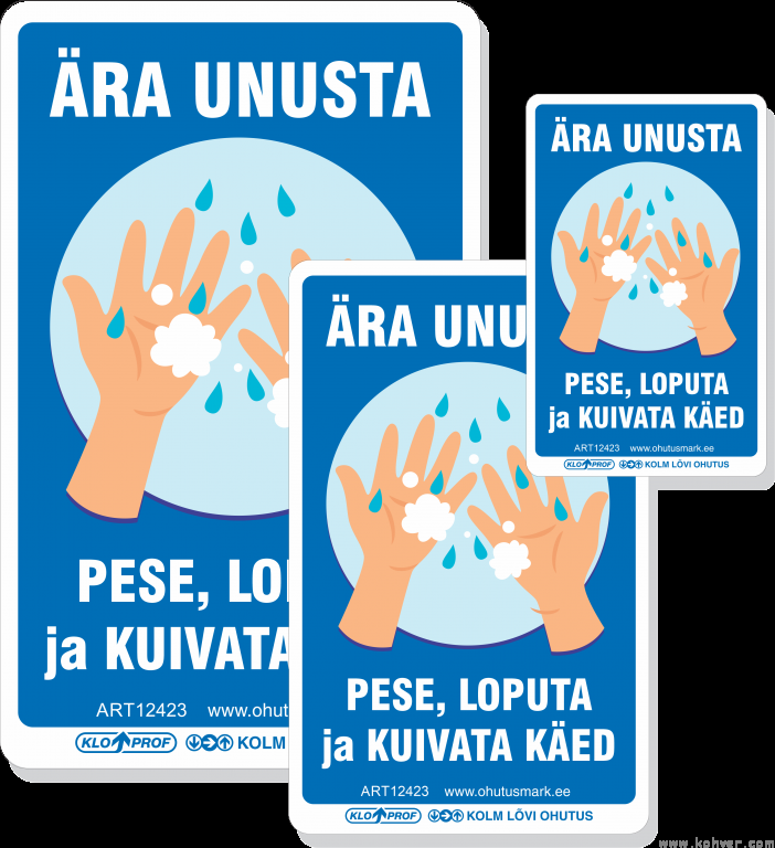 KLEEBISED: Ära unusta pese loputa ja kuivata käed. Infoleht. Teabetahvel.