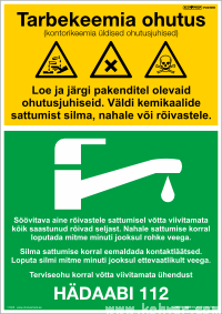 Tarbekeemia ohutus- üldised juhised. Tarbekemikaalide ohutus. Plakat on saadaval erinevates suurustes.