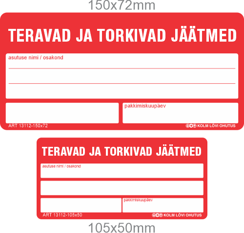 Teravad ja torkivad jäätmed. Jäätmekottide etiketid sorditi kogumiseks