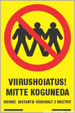 Viirushoiatus! Mitte koguneda. Hoidke distantsi vähemalt 2 meetrit.