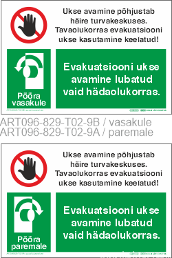 Tavaolukorras evakuatsiooni ukse avamine keelatud. Evakuatsiooni avamine on lubatud vaid hädaolukorras.