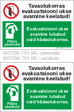 Tavaolukorras evakuatsiooni ukse avamine keelatud. Evakuatsiooni avamine on lubatud vaid hädaolukorras.
