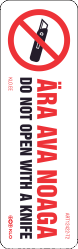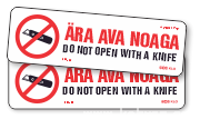 Ära ava noaga. Do not open with a knife. Pakendi markeerimise kleebis (80x25mm).