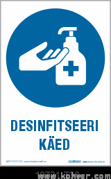 Käte desinfitseerimine. Desinfitseeri käed. Käte desinfitseerimise kohustus tekstita märgis (19721).
