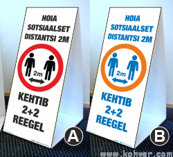 Hoiatav põrandamärk "Hoia sotsiaalset distantsi. Kehtib 2+2 reegel" A või B-suurus. Põrandapüstak.