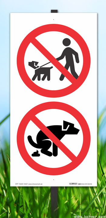 Koerte jm lemmikloomade jalutamise ja kakatamise keeld. Haljasala omanik keelab lemmikloomadega sisenemise.