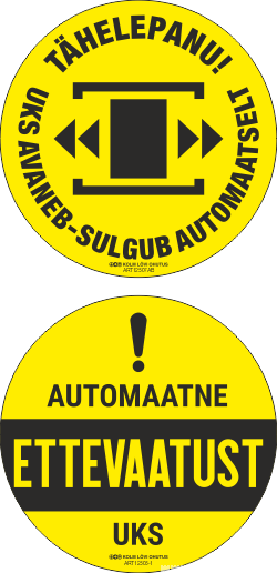 Ettevaatust! Automaatne uks (ümmargune disain). Caution! Automatic door. Ukseohutus.