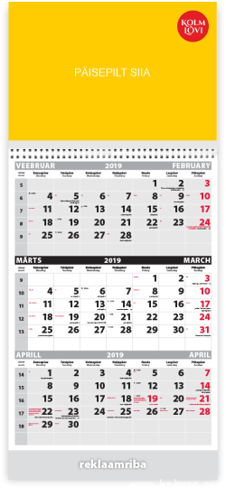 Trio (kolm kuud ülestikku) kalender teie soovitud pildiga või meie valikust. HIND SÕLTUB KOGUSEST!