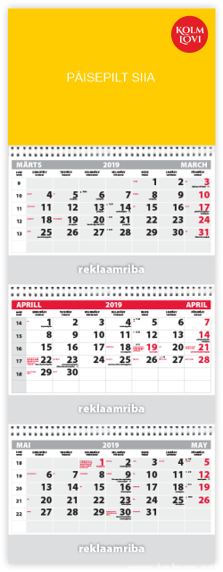 Trio-Max (kolm kuud ülestikku) kalender teie soovitud pildiga või meie valikust. Hind sõltub kogusest, sisestades koguskasti soovitud koguse näed tükihinda. Alates 500 tk saada palun päring info@trykikeskus.ee