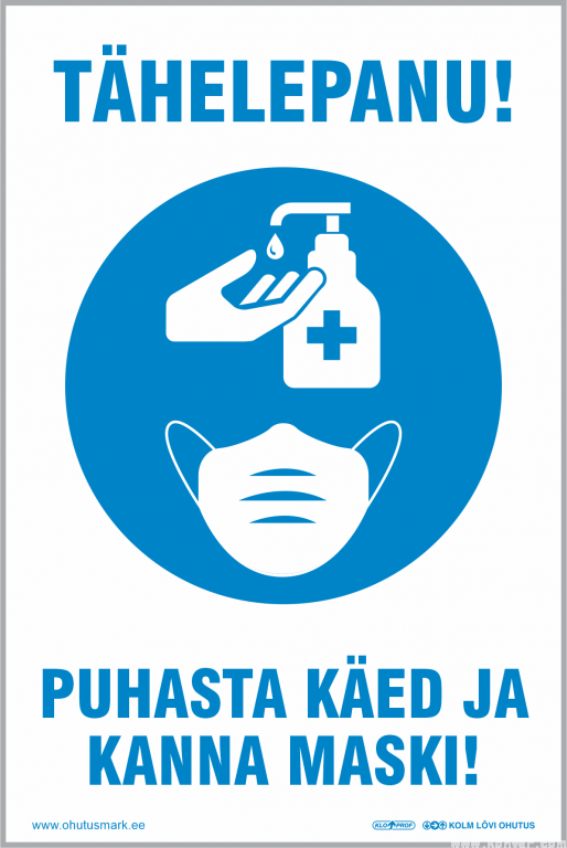 Tähelepanu! Puhasta käed ja kanna maski! (vertikaalne versioon)