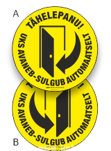 Ukse ohutuskleebis, automaatne uks ühepoolsete hingedega.