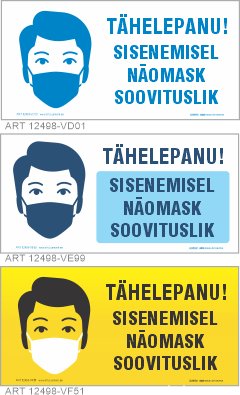 Tähelepanu! Sisenemisel näomask soovituslik. 200x100, 300x150, 400x200, 500x250mm (horisontaalne)