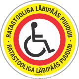 PÕRANDAKLEEBIS: RATASOOLIGA LÄBIPÄÄS PUUDUB ø400 või ø200mm. Ratastooliga läbimiseks tehniliselt mitte sobiv trepikoja või koridori osa. Ohutusmärgid põrandale kleepimiseks.