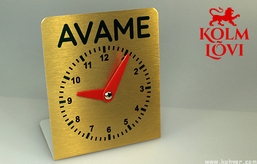 Õhukesest alumiiniumist pausikell lauale kuldse või hõbedase viimistlusega. Suurus 100x135mm. Seierid erineva pikkusega, et ei eksiks parkimisaja märkimisel.