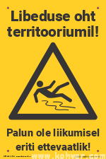Libedusesohust hoiatav märgis tekstiga: Libeduse oht territooriumil! Palun ole liikumisel eriti ettevaatlik!