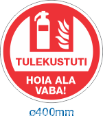 Põrandakleebis: Tulekustuti. Hoia ala vaba! ø300,400, 500mm. Piirangu ala tähistamine.