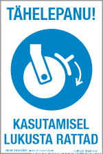 Tähelepanu! Kasutamisel lukusta rattad. TEKSTIGA märgis (100x150, 150x225, 200x300, 300x450mm)