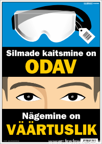Kaitseprillide poster. Silmade kaitsmine on odav. Nägemine on väärtuslik.