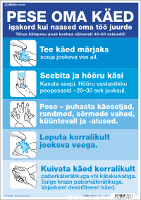 PESE OMA KÄED+vajadusel desinfitseeri (pikemate tekstiga versioon) KLO POSTER (ÕIGE KÄTE PESU)