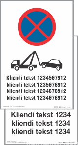 Parkimise keeld ja teisaldamise hoiatus (PARKIMINE KEELATUD). Parkimise märgid kliendi tekstiga. 200x300, 300x450mm või suurem.