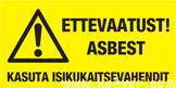 Ettevaatust, asbest! Kasuta isikukaitsevahendit.